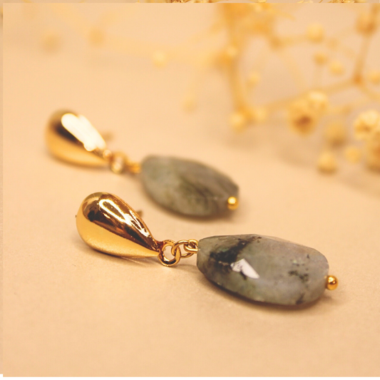 Labradorita Gota Facetada & base de flor labrada con zirconias