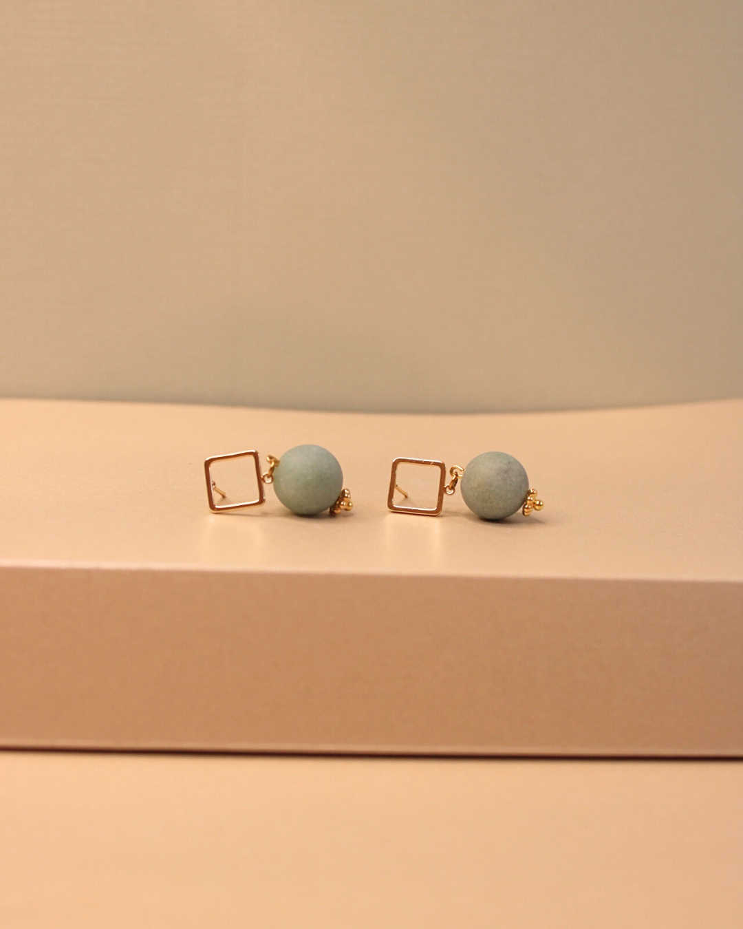 Aretes en amazónita mate de 10mm, con hermosas bases cuadradas en acero inoxidable con baño en oro 24k.