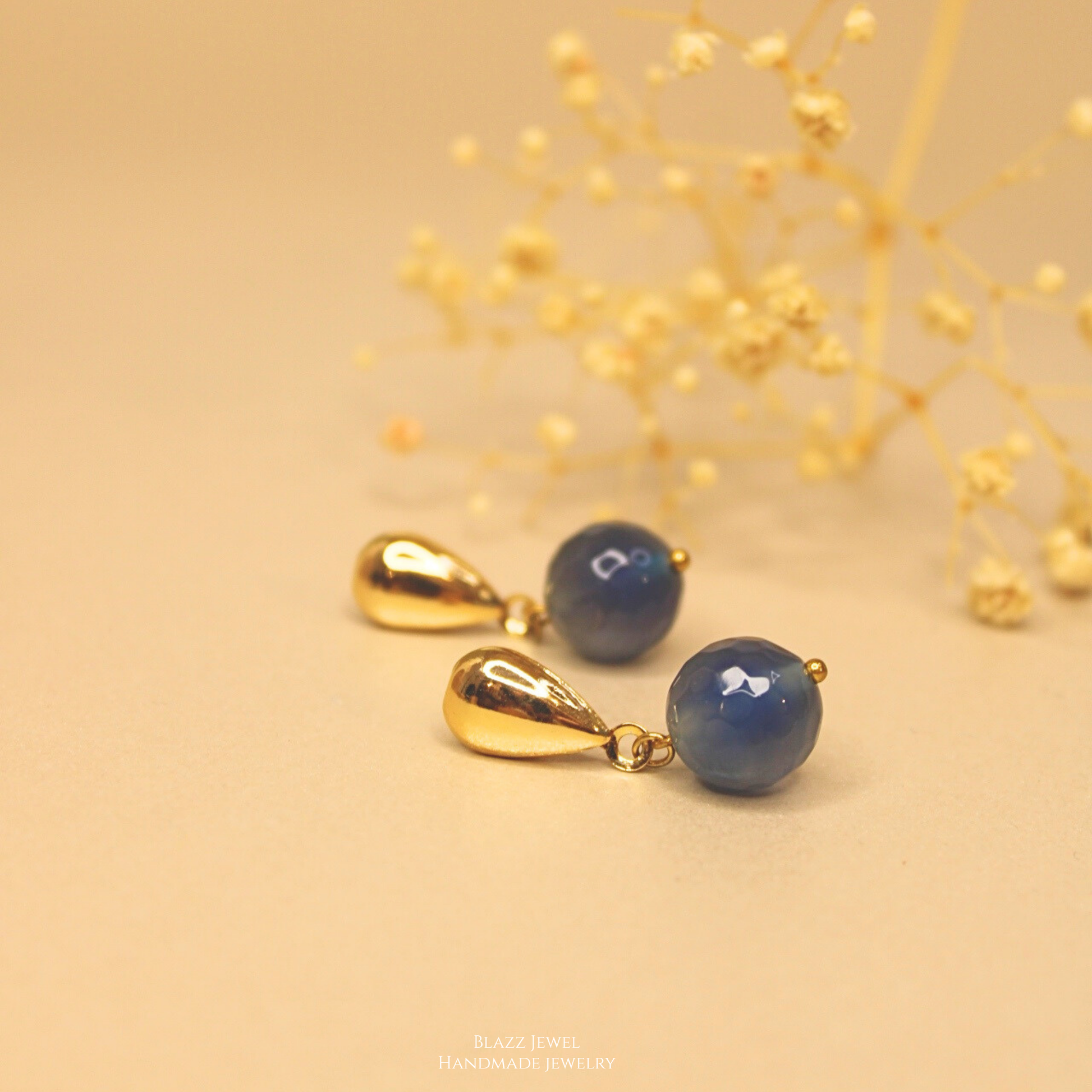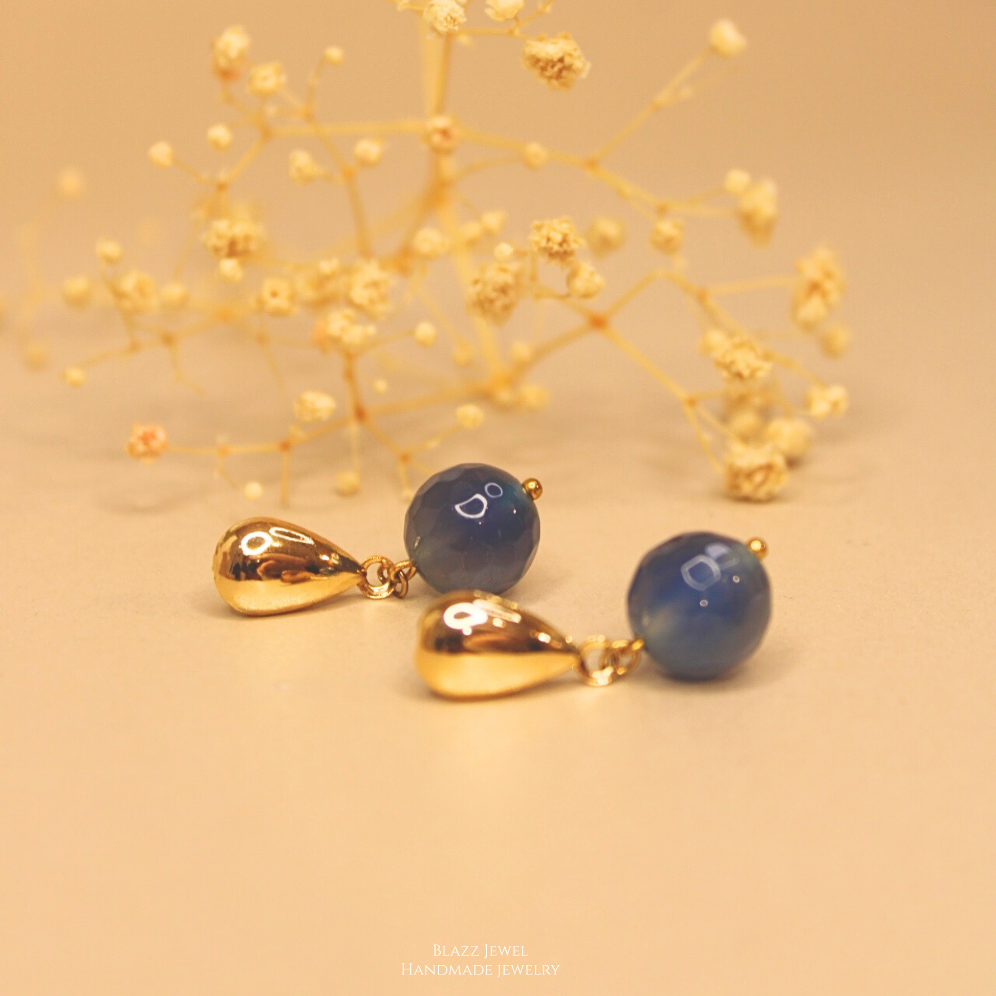 Aretes en Ágata azul 12mm, con base gota dorada.