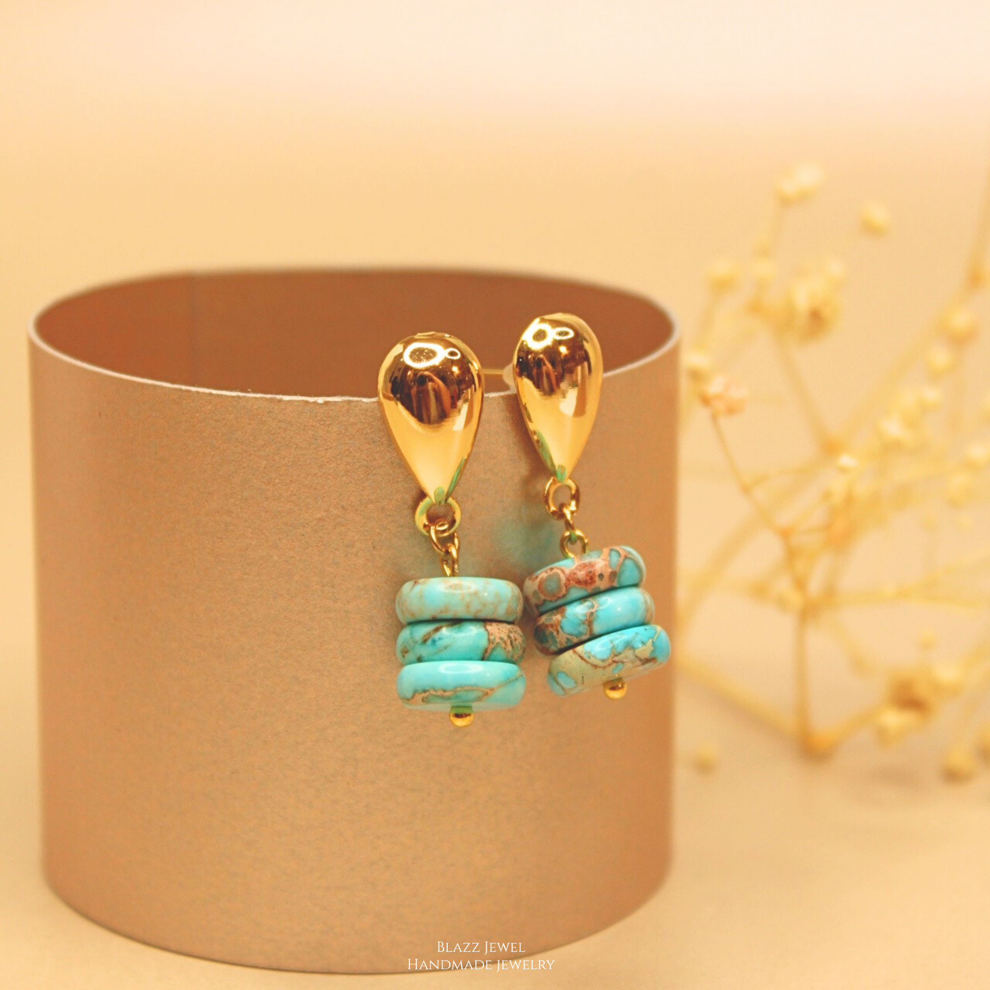 Arete Turquesa Africana & base de gota dorada