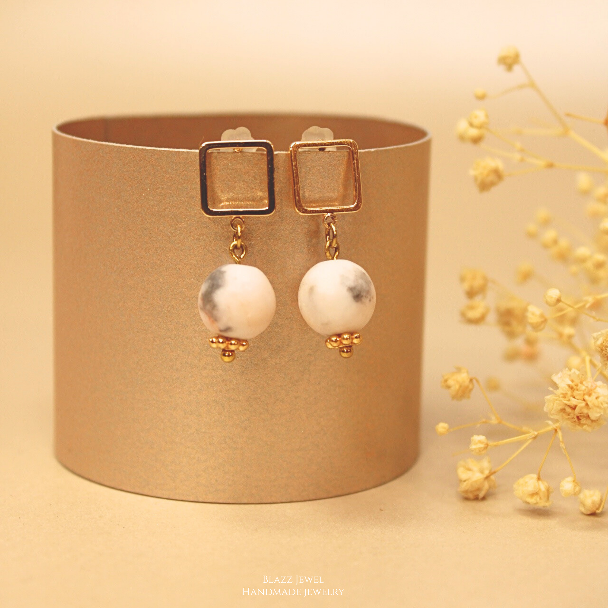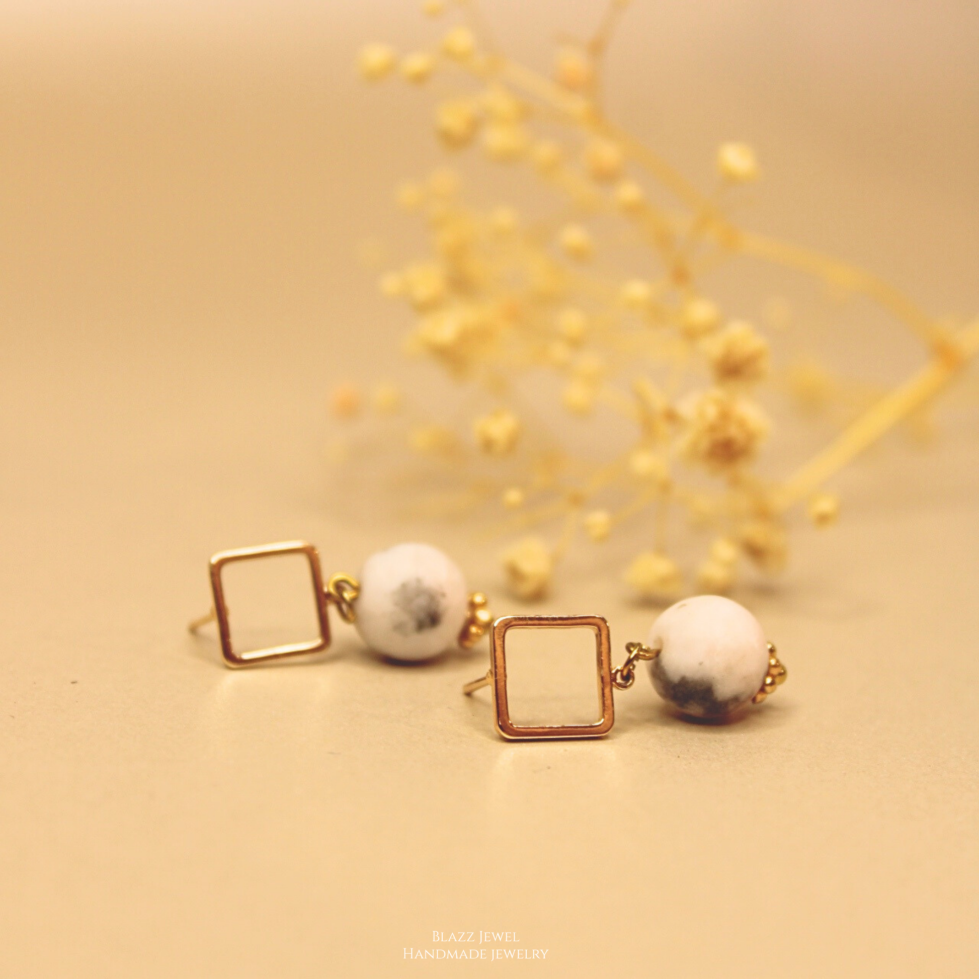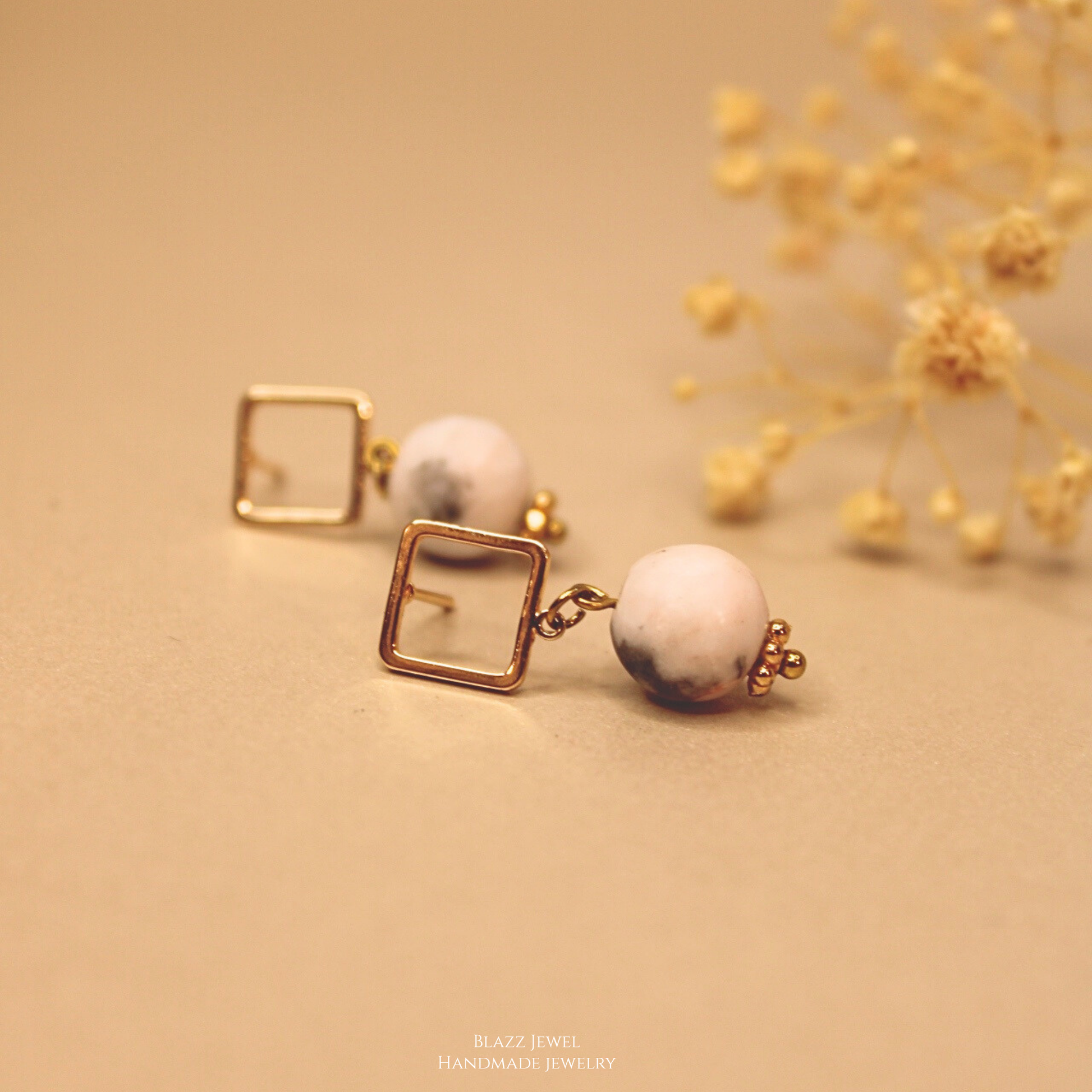 Aretes en Jaspe Zebra 10mm, con base cuadrada.