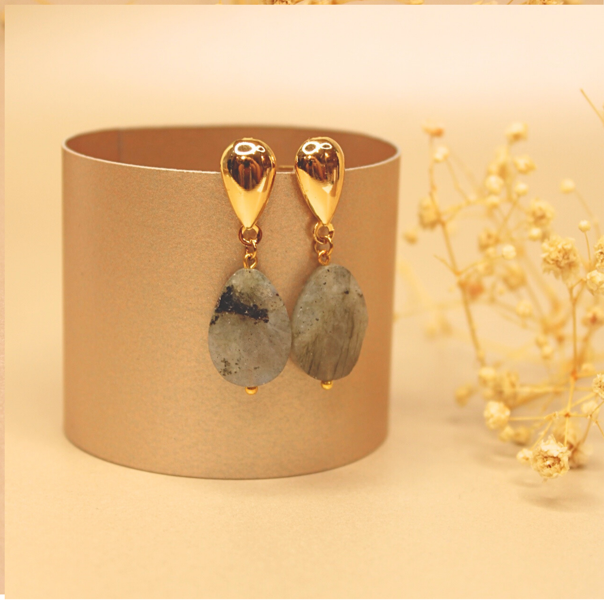 Aretes en Labradorita Gota Facetada & base de gota dorada