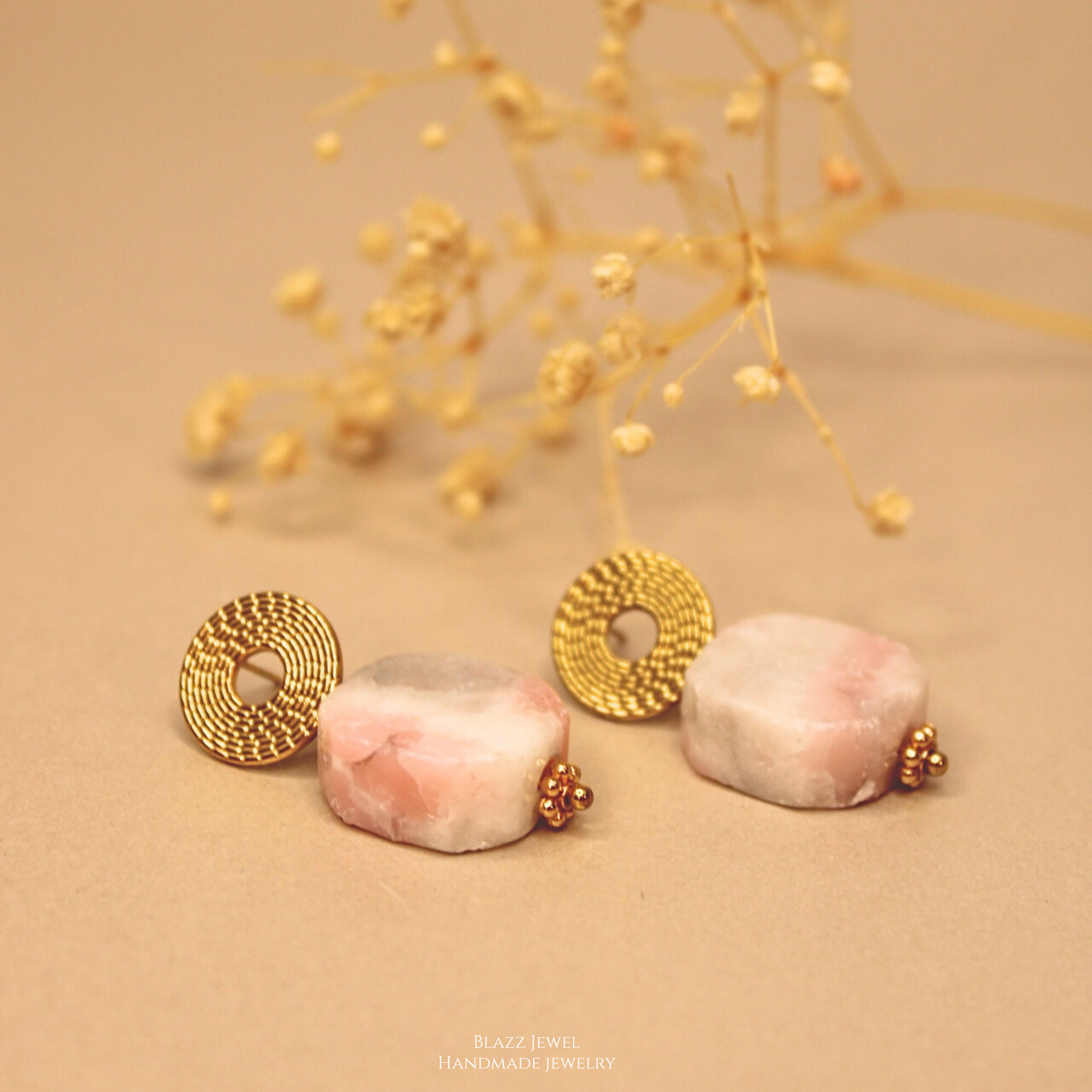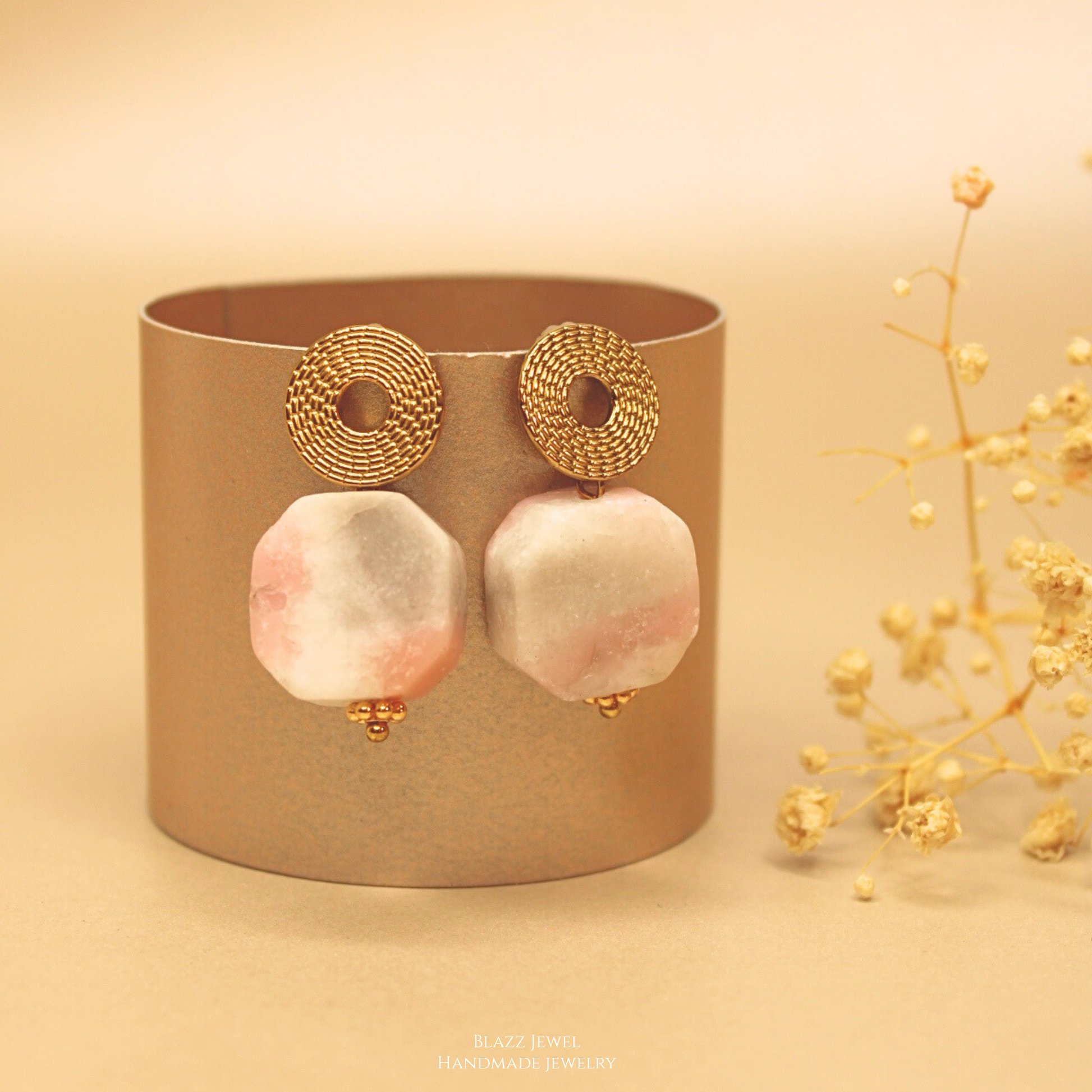 Opalo Rosado & base redonda hueca labrada